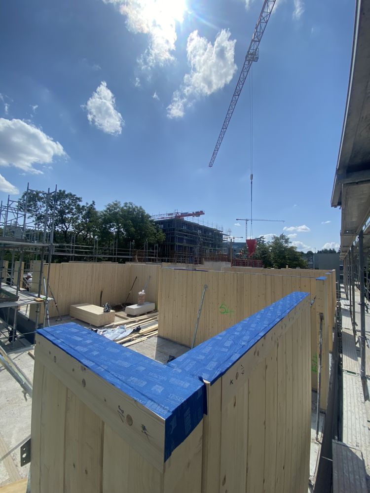Die Baugenossenschaften Hagenbrünneli (HB) und Turicum (TC) realisierten gemeinsam eine Überbauung mit 3 MFH (1 x HB und 2 x TC). Die Gebäude basieren auf einer Unterterrainkonstruktion und Treppenhäuser in Ortbetonbauweise. Die Geschossdecken wurden hybrid und die vertikalen Tragelemente der Wohnungen in Holz und Stahlstützen ausgeführt.