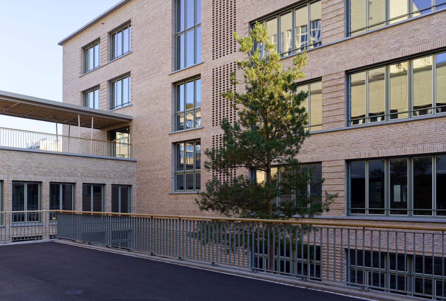 Das Projekt umfasste die Sanierung eines unter Denkmalschutz stehenden Schulhauses und den Bau zweier neuer Schulhäuser mit Turnhallen sowie einer Aula mit Mensa und Mediothek.